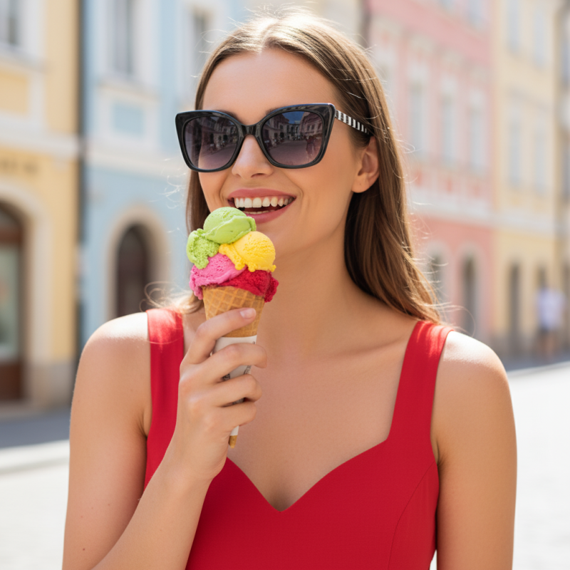 Sončna očala niso več le praktična zaščita oči pred soncem. Danes so nepogrešljiv del vsake elegantne oprave in izrazit modni dodatek, ki lahko poudari osebnost in individualnost. Leče z gradientnim učinkom postopoma prehajajo iz temnejšega odtenka v svetlejši odtenek na dnu leče. Gladek prehod intenzivnosti zatemnitve je optimalen predvsem za mesto. Očalne leče nudijo prijetno zaščito pred soncem in hkrati omogočajo boljšo vidljivost pri branju ali delu na računalniku. Edinstven dizajn je praktična in elegantna rešitev. Luksuzna oblika očal, ki ima prestiž in ostaja brezčasen modni dodatek. Glavni material okvirja očal je trpežna in lahka plastika. Sončna očala imajo UV filter 400, kar pomeni, da blokirajo vse UV sevanje z valovno dolžino do 400 nanometrov. To vključuje sevanje UVA in UVB. Ta UV filter je bistveni del dobrih sončnih očal. Njegova prisotnost zagotavlja celovito zaščito oči pred škodljivimi UV žarki in prispeva k dolgoročnemu zdravju oči. Očala prepuščajo 8 - 18 % svetlobnih žarkov, leče pa so temne barve. Intenzivnost zatemnitve leč je primerna kot zaščita pred močno sončno svetlobo. Očala dobite v originalnem etuiju ali torbici proizvajalca. Lep dodatek k očalom je tudi čistilna krpica iz mikrovlaken, primerna za nego leč.Očala z zamenljivimi stekli